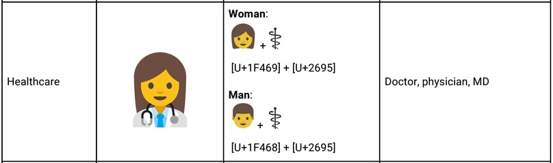 Uit het onderzoek dat bij het voorstel is gevoegd blijkt ook dat mensen vaak naar emoij’s gerelateerd aan beroepen zoeken. Daarom willen de Google-medewerkers ook de mogelijkheid om de chat-icoontjes te combineren.