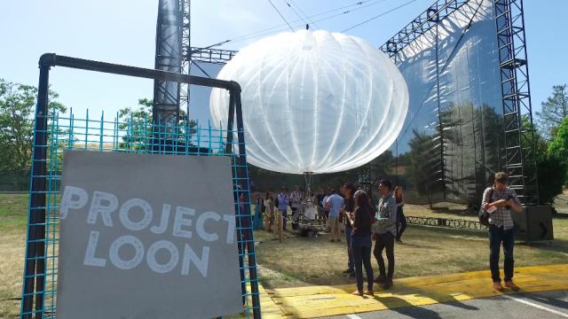 Ook Loon, de weerballon van Google uitgerust met een 4G-antenne, was voor een keertje op de grond gezet. Zo was goed te zien hoe groot zo’n ballon daadwerkelijk is.