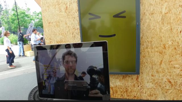 Personen die voor een camera gingen zien werden door middel van gezichtsherkenning gekoppeld aan een emoji, die vervolgens bewoog met de uitdrukkingen van de persoon. Blij gezicht, blije smiley. Sip gezicht, sippe smiley.