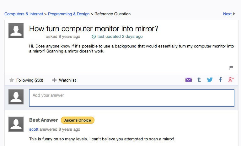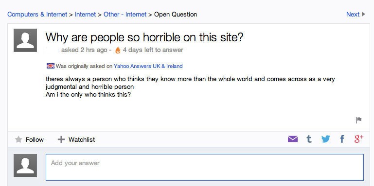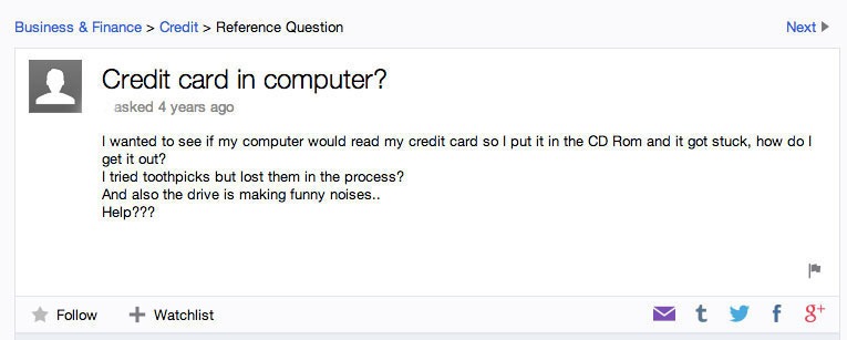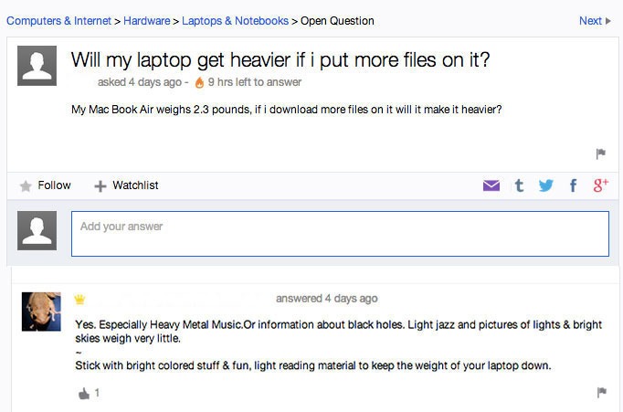 Op het internet verandert er zoveel zo snel, dat zelfs voor de meest internet-savvy nerds onder ons moeilijk bij te houden is. Het is dan ook niet zo gek dat er op Yahoo over het internet nogal wat vragen worden gesteld en die zijn niet altijd even logisch. Hier vind je de leukste, raarste vragen op een rij: