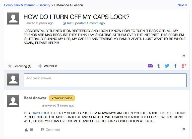 Een serieus probleem, die capslocktoets. Voor je het weet ben je al je vrienden, baan en partner kwijt.