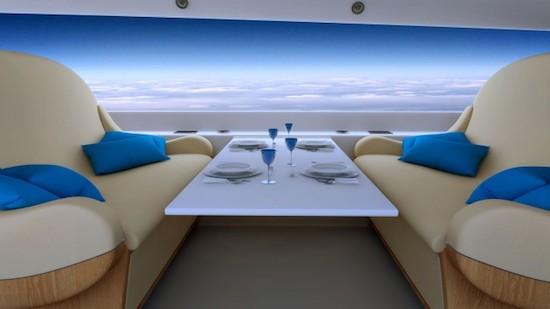 Het aerospacebedrijf uit Boston maakt gebruik van de nieuwste ontwikkelingen in video recording, live streaming en display technologie in het vliegtuiginterieur en vervangt de ramen met gigantische, high defenition schermen. Het interieur van de supersonische jet wordt aan de buitenkant voorzien van kleine camera’s die hun beelden laten zien op de ononderbroken panoramaschermen. Zo heb je écht het idee dat je midden in de lucht zit.